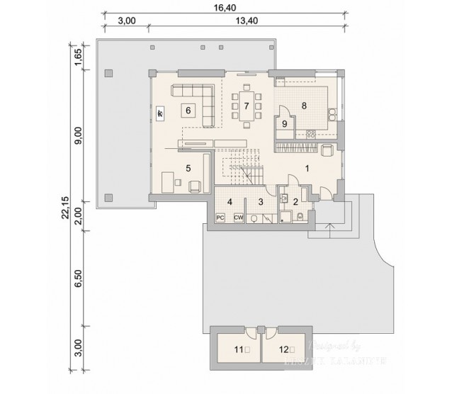 8. Attic wall height0,9 m