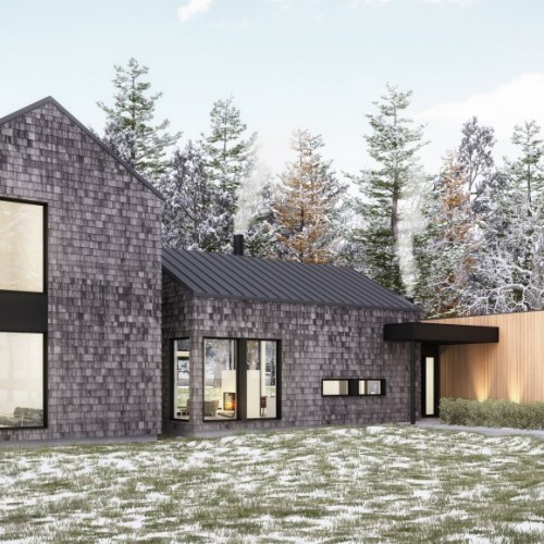 The New Classic inspiration #32 feels warm, yet contemporary, with clean lines, simple, esthetically pleasing finishes of grey shingles and natural wood, and fireplaces both inside the house and on the screened porch. A 2-car garage, plus family-friendly connecting spaces make this a home-away-from-home to be proud of, while the balcony patio and big guest room are perfect for entertaining.