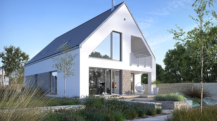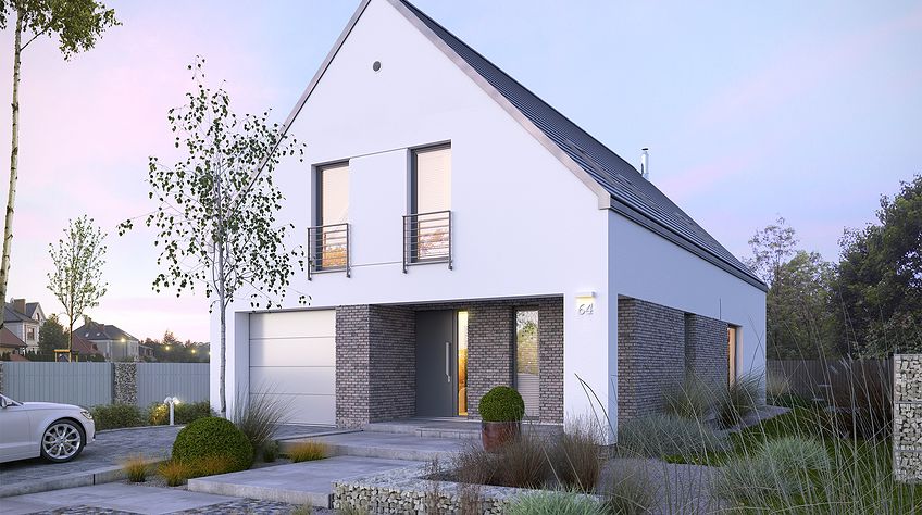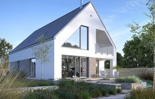 House plan with an attic Available 4B with a 1-storey garage, a gable roof, a terrace and a mezzanine.
