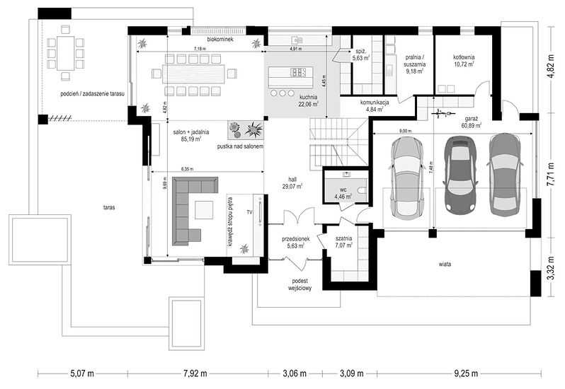 4. Pokój dzienny + jadalnia85,19 m2