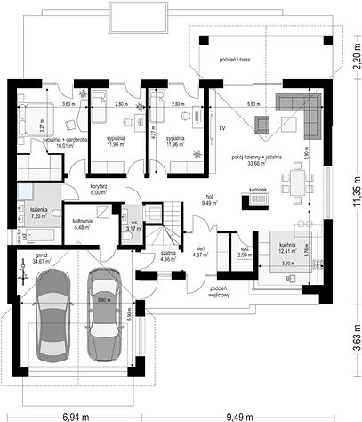 5. Pokój dzienny + jadalnia33,70 m2