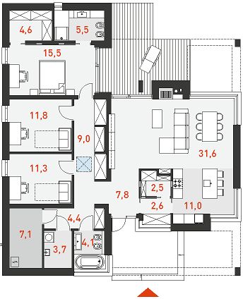 • 5. Pokój dzienny + jadalnia31,60 m2