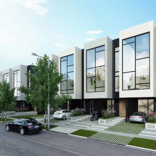 The standout feature of this inspirationis a reversal of the traditional story configuration, with the bedrooms in the basement and ground floor, and the kitchen, dining room and office situated on the top floor. The first floor has a double-height master bedroom with a curtain glass wall looking out onto the street.