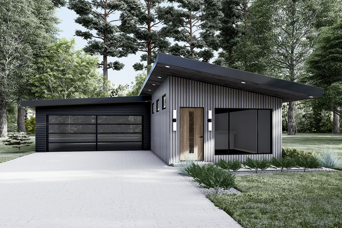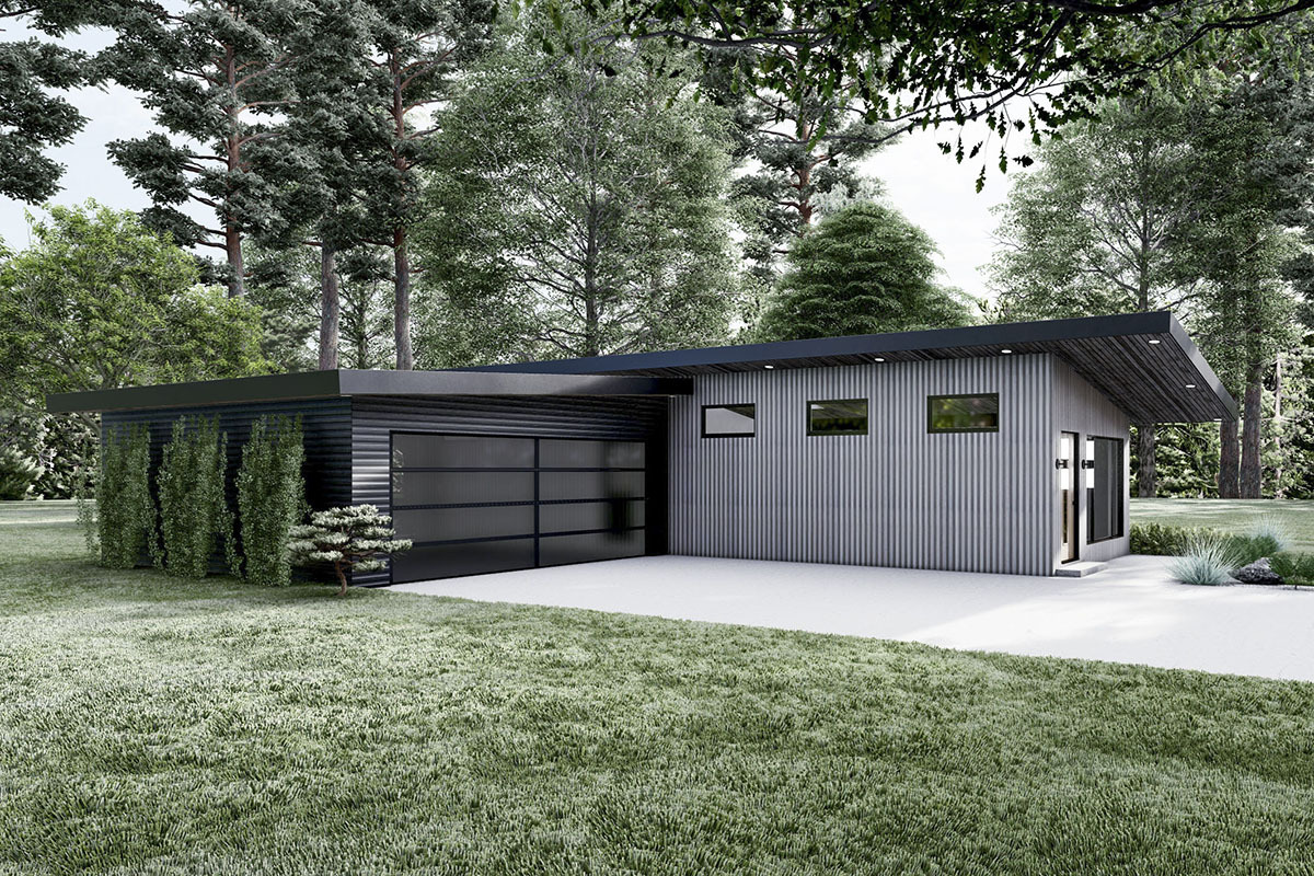 Long-and-narrow 3-Bed Modern Home Plan with 2-Car Garage - 70698MK floor plan - Main Level