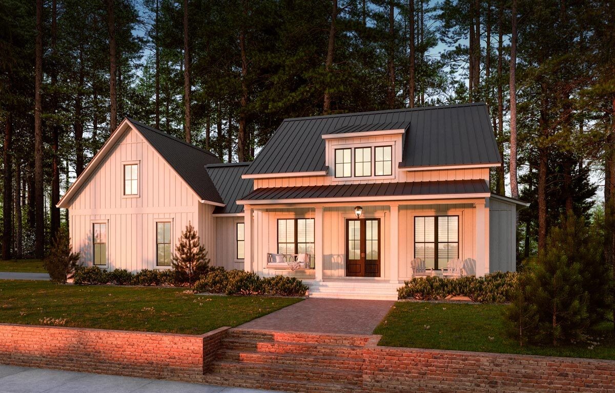 2-Bedroom Modern Farmhouse Dream Home Plan with Bonus Over Garage - 51865HZ floor plan - Main Level