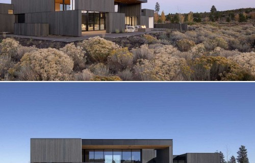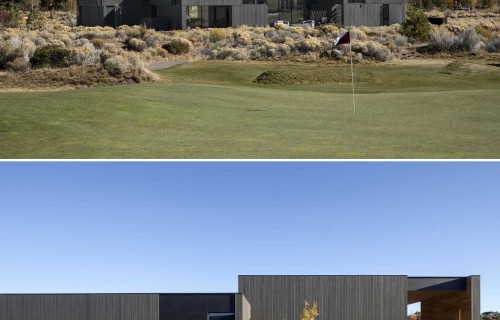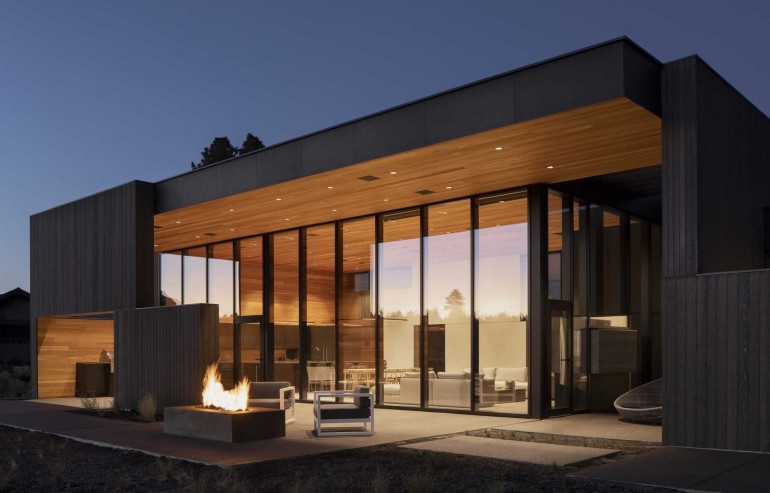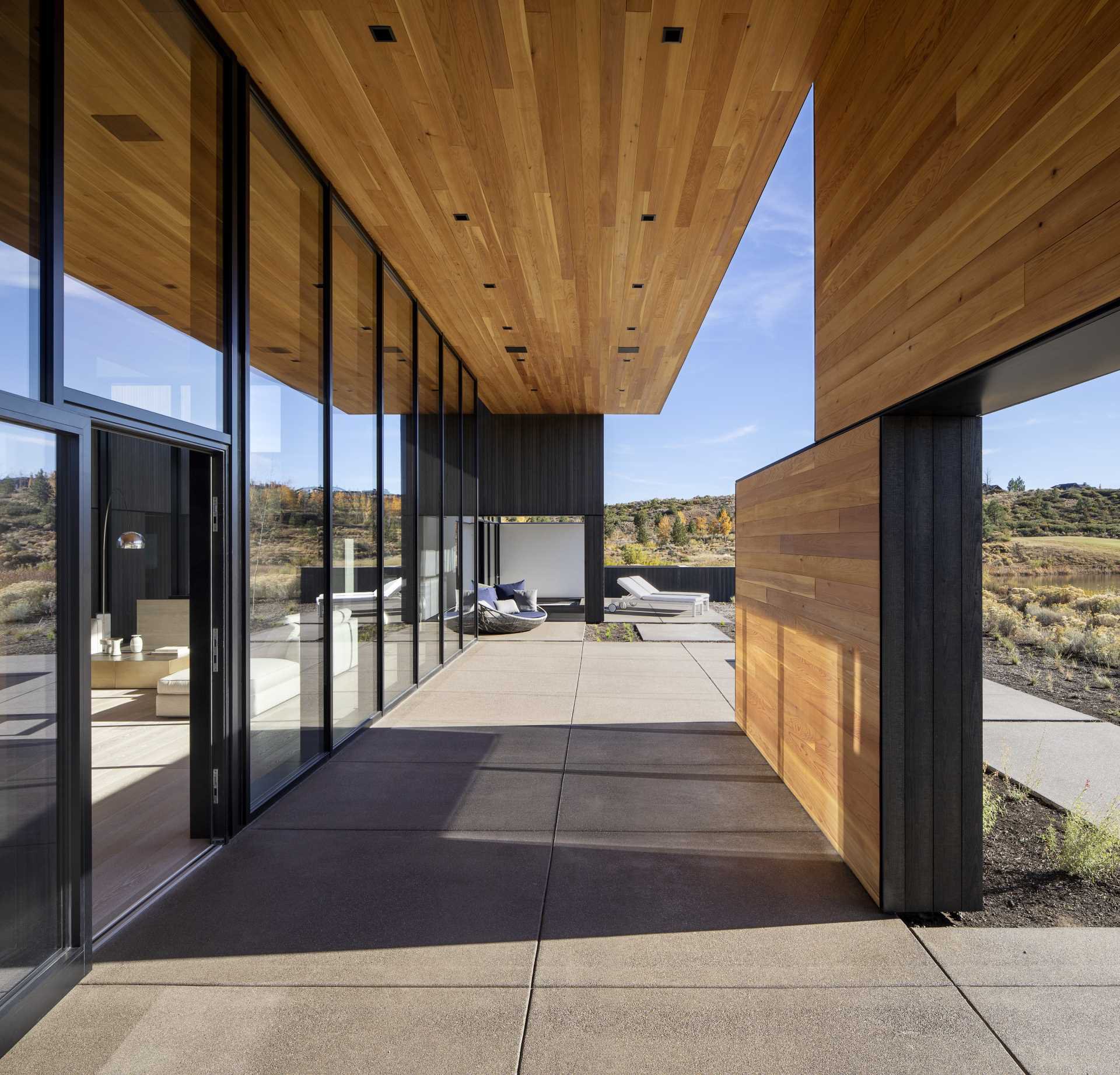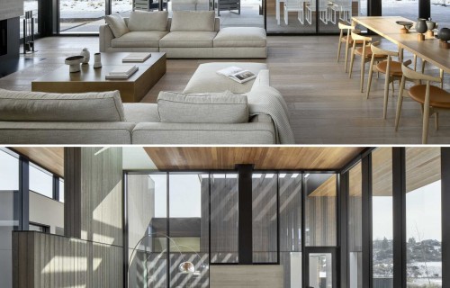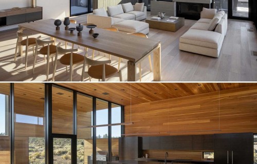 A High Ceiling Covers The Living Room And Kitchen Inside This New House