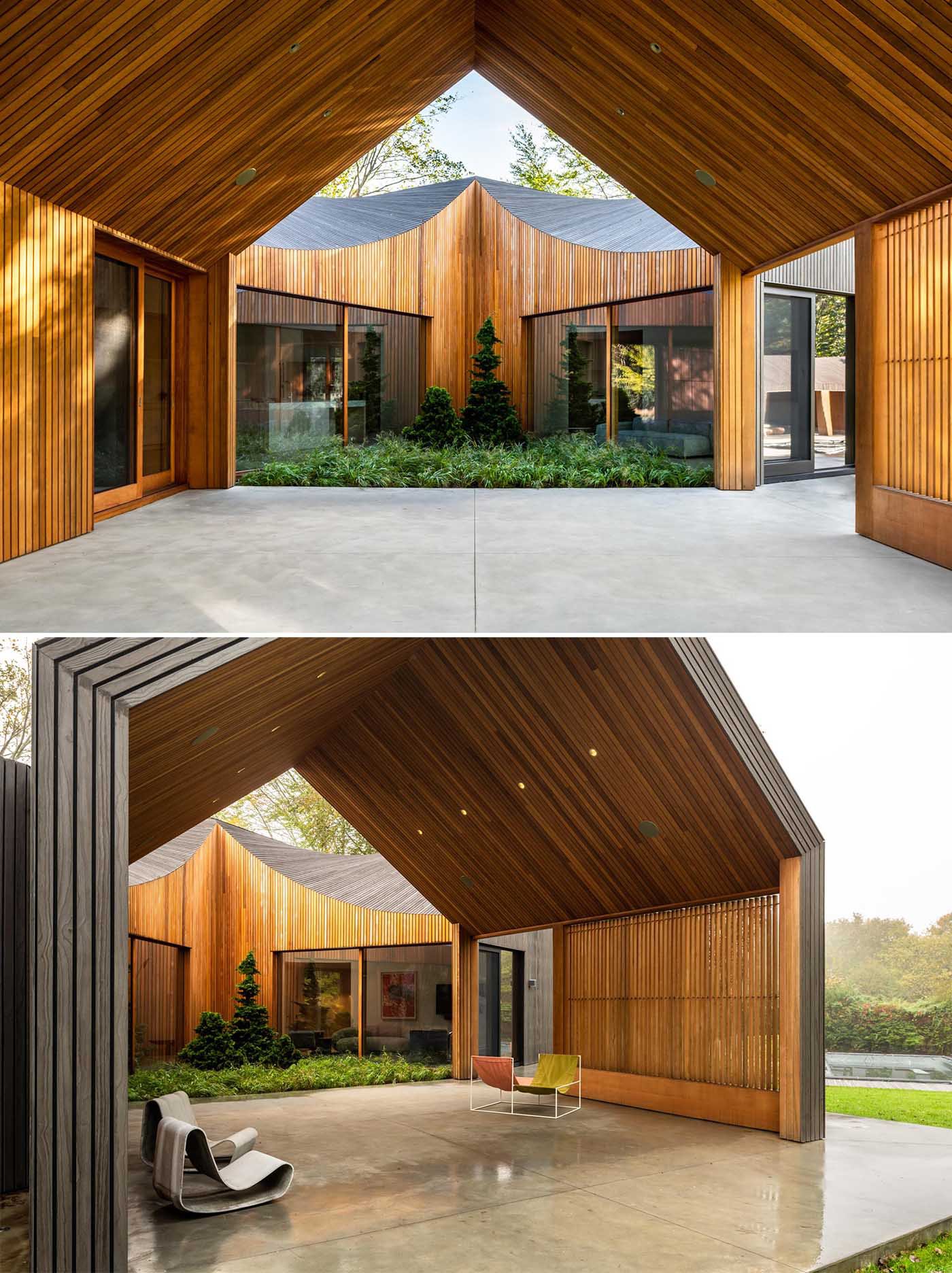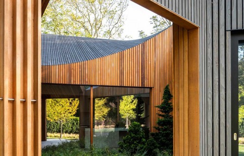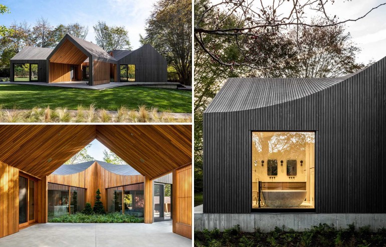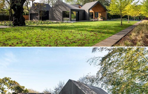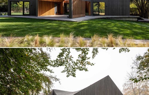 Deep Gray Slatted Accoya Wood Siding Covers The Exterior Of This Modern House