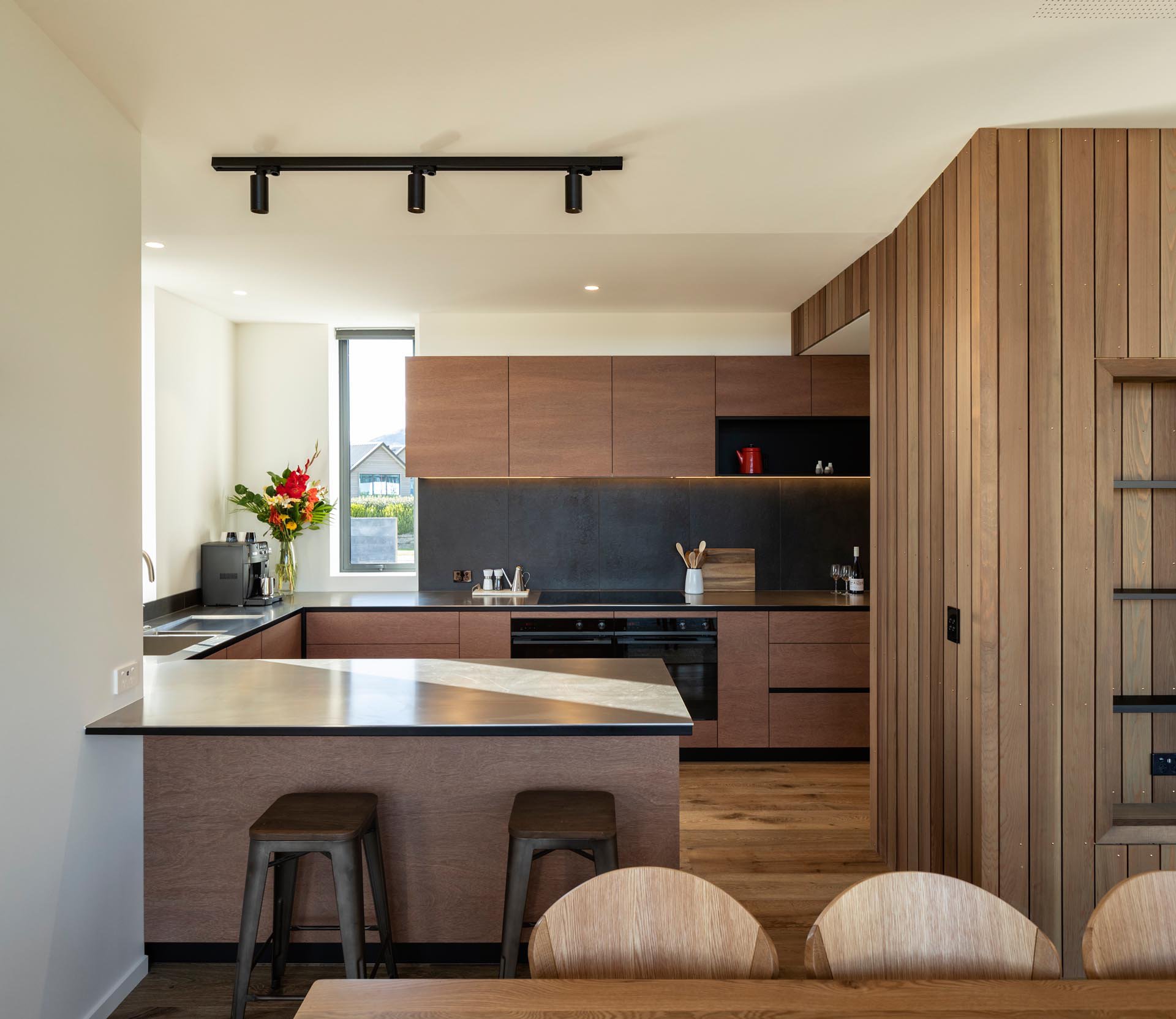 Dark Vertical Wood Siding On The Exterior Of This Modern House Gives It A Strong Personality