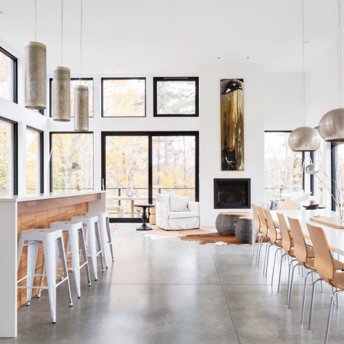 Situated two hours northwest of Montreal, in the Laurentians, this 3,000 sq. ft. home is characterized by its open concept main floor and easy access walk-out basement.