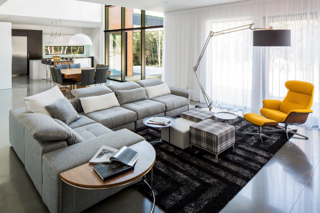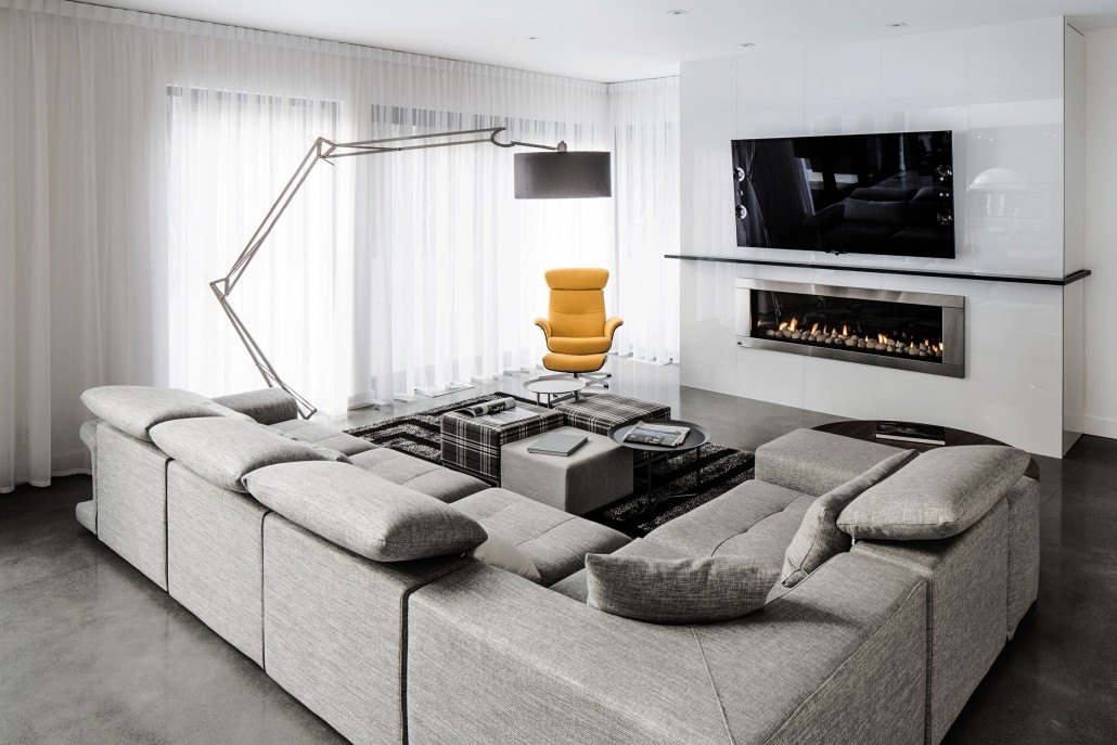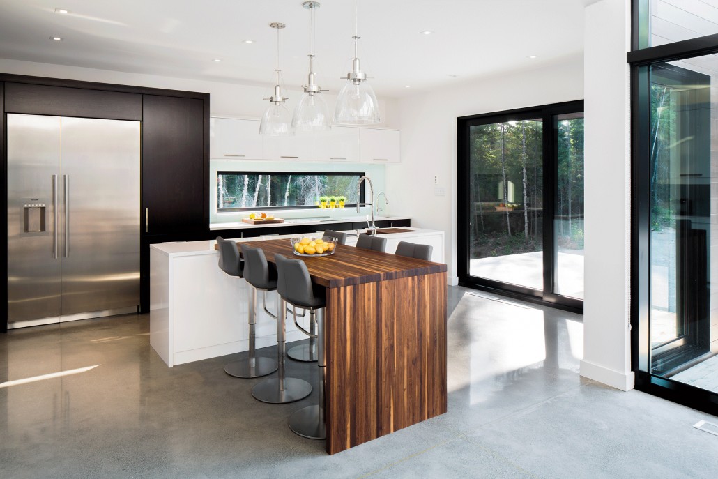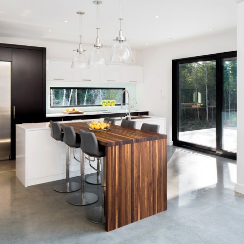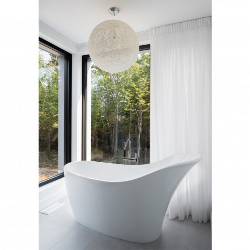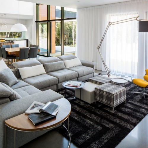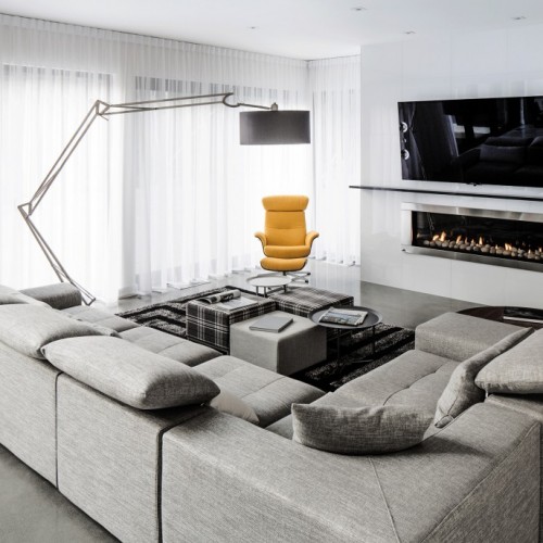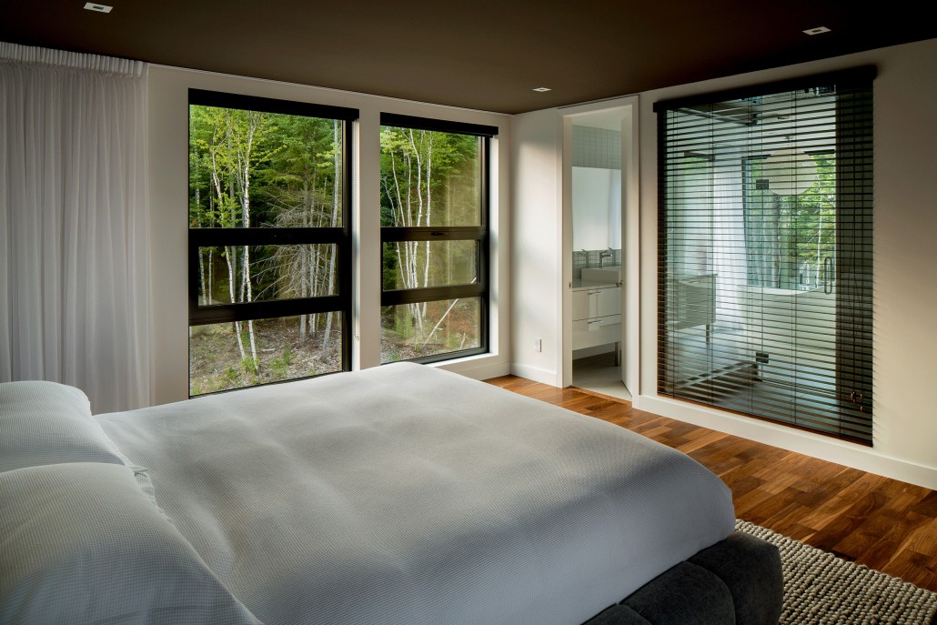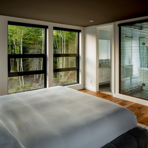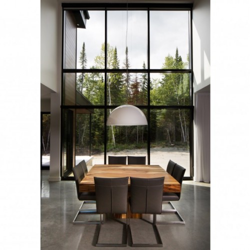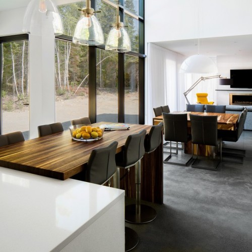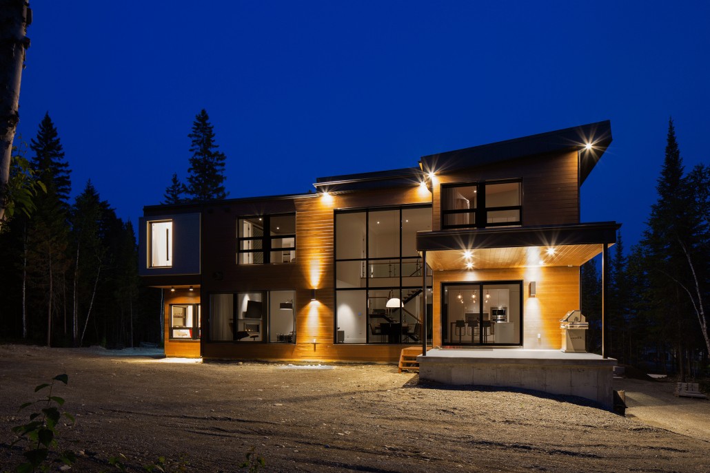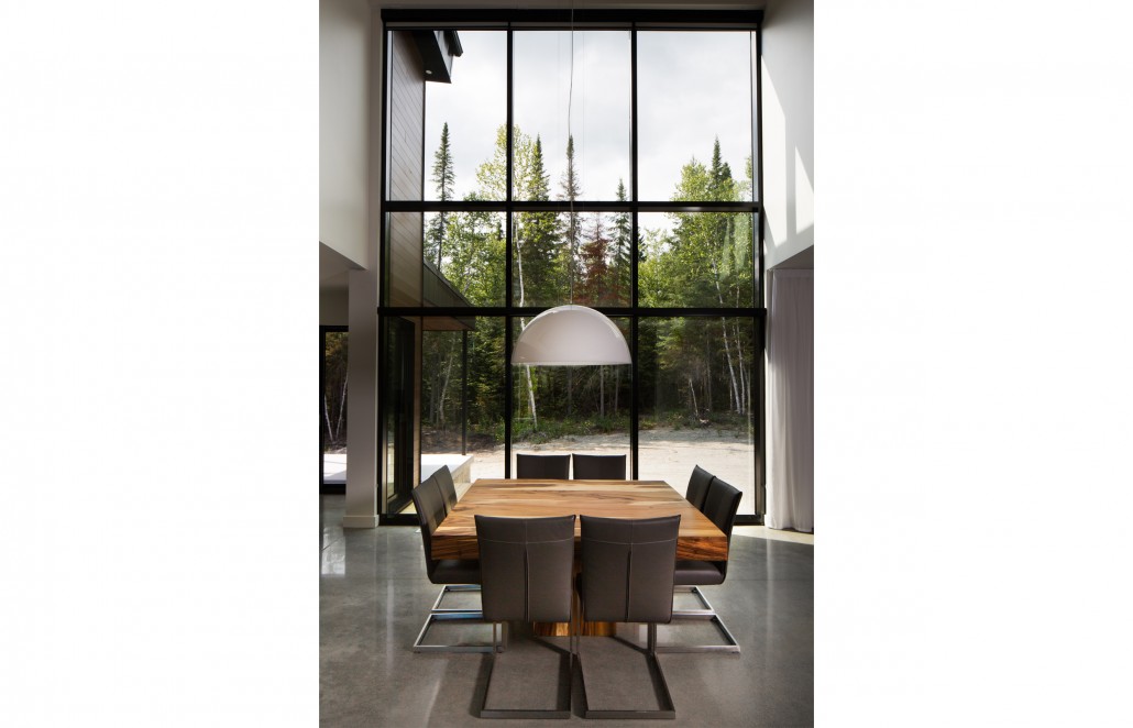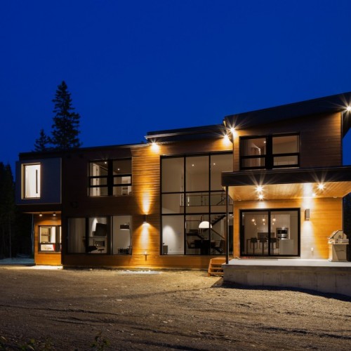 A two storey family home occupied by a young professional couple, their son and a baby girl. The location is a remote area of northern Quebec and the home is surrounded by forest. The home’s beautiful architecture is complemented by a stunning interior that was designed entirely by the JNCN HOMES team, including a curtain wall and a bright, open-plan main floor featuring a large kitchen. Upstairs is a master bedroom with ensuite bathroom and a room for each child. Vehicles are also protected from the bitterly cold winters in an adjoining double garage.