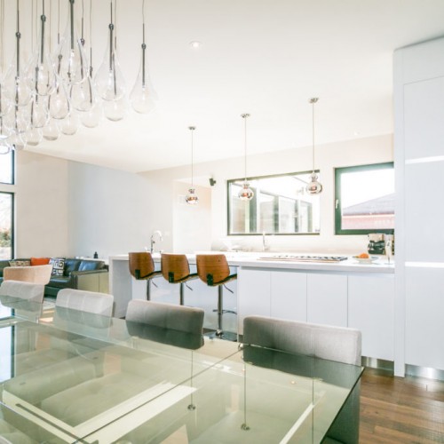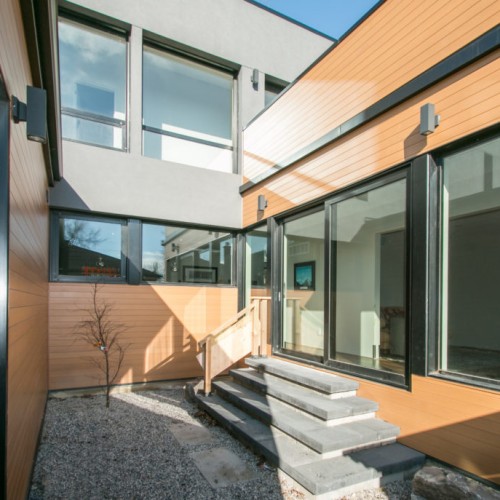 This custom home project in Oakville was designed based off our Modern Contemporary inspirations. The home features an open concept living space that includes a kitchen and dining room, as well as an double height ceiling living room which the focal point of the home. On the second floor there is master bedroom with ensuite and two additional rooms with a main bathroom. The home also includes a 2 car garage, finished basement and an inner courtyard.