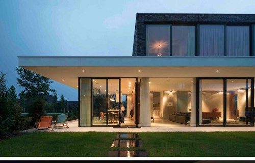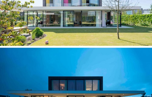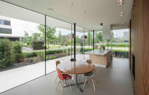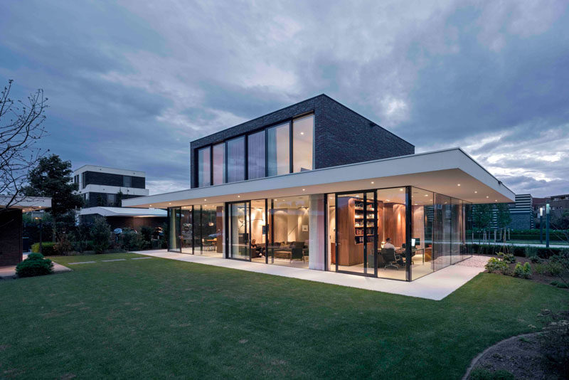 The ground floor of this house is almost completely surrounded by windows