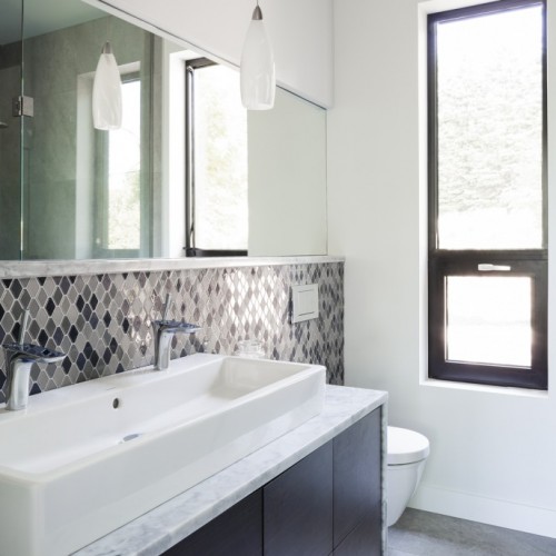 This beautiful secondary home overlooking a majestic lake is defined by its large windows and large open spaces. The optimized room configuration creates a warm and timeless design. The integrated outdoor terrace opens the interior living space onto nature’s canvas.